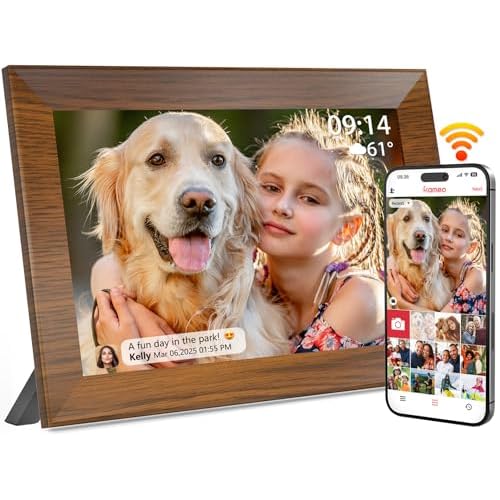 Frameo 10.1″ Digital Picture Frame with 32GB Memory WiFi Electronic Photo Frame Wood 1280 x 800 IPS Touch Screen Auto-Rotate Slideshow Wall Mountable Share Photos/Video Remotely Anywhere