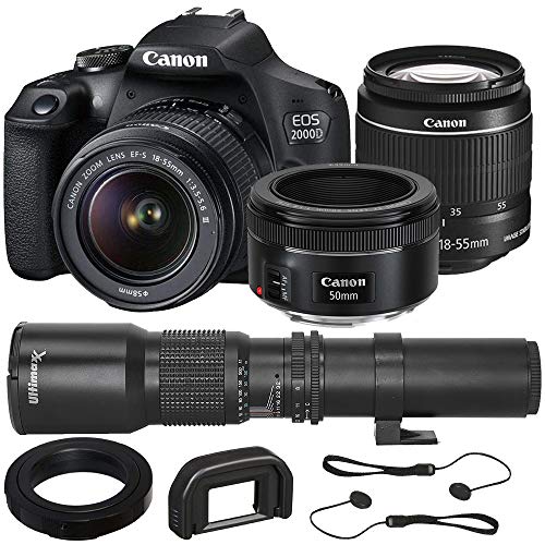Canon EOS 2000D (T7) EF-S 18-55mm III Kit with Canon EF 50mm f/1.8 STM Lens and Accessory Bundle – Includes: 500mm Telephoto Preset Lens, Professional EF T-Mount and More