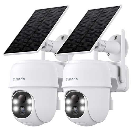 2K Cameras for Home Security-2.4G WiFi Outdoor Camera Wireless Solar/Battery Powered with solar panel, 360° Viewing, AI Human Detection, Color Night Vision, with SD Storage, Works with Alexa(2 Pack)