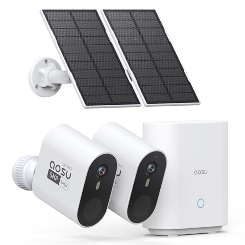 AOSU Security Cameras Outdoor Wireless, 2 Cam-Kit, No Subscription, Solar-Powered, Home Security Cameras System with 360° Pan & Tilt, Auto Tracking, 2K Color Night Vision, Easy Setup, 5G & 2.4G WiFi
