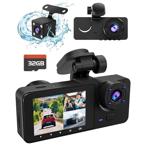 3 Channel Dash Cam,4K+1080P Dash Cam Front and Rear Inside, Dash Camera for Cars, Triple Car Camera with 32GB Card,Built-in G-Sensor, 2’’ IPS Display Car Camera,Loop Recording,24Hr Parking