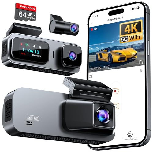 4K Dash Cam Front and Rear, 170° Ultra Wide Dashcam with ADAS, Night Vision, 24/7 Parking Mode, Sony IMX415 Sensor, WDR, Free 64GB SD Card, 5G/2.4G WiFi, Built-in GPS, Loop Recording