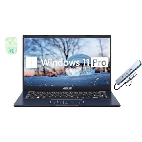 ASUS 14″ FHD Laptop Computer, 4-Core Intel Pentium, Windows 11 Pro with Microsoft Office Lifetime Suite, 4GB RAM 576GB Storage (256GB SSD + 256GB Docking Station +64GB eMMC), PLUSERA Earphones, Black
