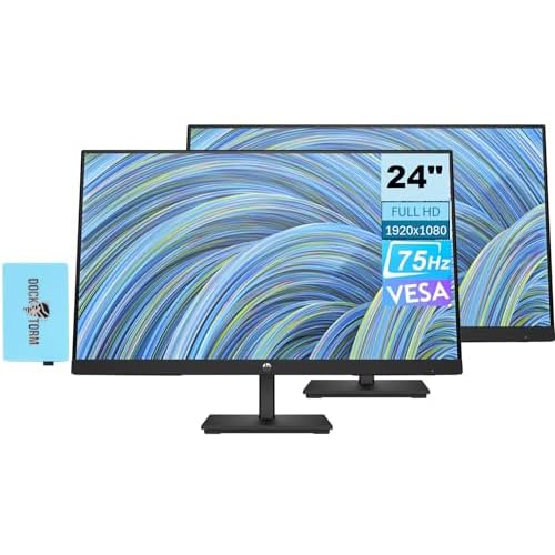 HP V24v G5 FreeSync Monitor 65P62AA#ABA Bundle with Docztorm Dock, 24″ FHD VA (1920×1080) 75Hz Display, 1 HDMI 1.4, VESA Mount (100x100mm), Ideal for Home & Business, Black (2025 Latest Model) (2Pack)