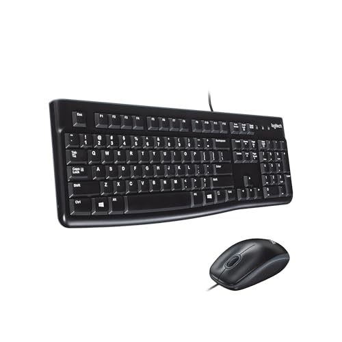 Logitech MK120 Wired Keyboard and Mouse Combo for Windows, Optical Wired Mouse, Full-Size Keyboard, USB Plug-and-Play, Compatible with PC, Laptop – Black