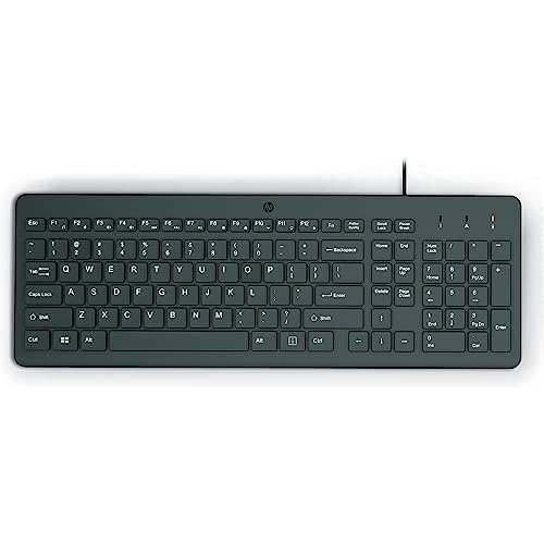 HP 150 Wired Keyboard with Numeric Keypad – Silent-Touch Chiclet Keyboard – Ergonomic, Comfortable – USB Plug-and-Connectivity, LED Indicators (664R5AA, Black)