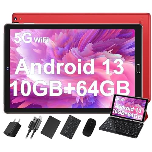 2025 Tablet 10 inch Android Octa-Cores 10GB RAM 64GB ROM (TF 1TB), WiFi 5G, Bluetooth 5.0, GPS, OTG, Type-C, 8MP+5MP, Tablet PC with Case, Keyboard and Mouse, Red