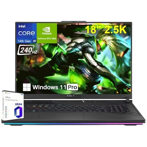 ASUS ROG Strix G18 Gaming Laptop, ROG Nebula 18″ 2.5K 240Hz QHD, Intel 24-Core i9 14900HX, 64 GB DDR5, 2 TB SSD, Per-Key RGB Backlit KB, GeForce RTX 4060, Wi-Fi6E, Win 11 Pro, Lifetime Office 2024