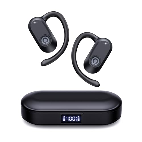 Bluetooth 5.4 Headphones True Wireless Stereo Earbuds 40H Playtime LED Power Display Earphones with lPX5 Waterproof Open Ear Buds for Sporting, Working, Studying Black