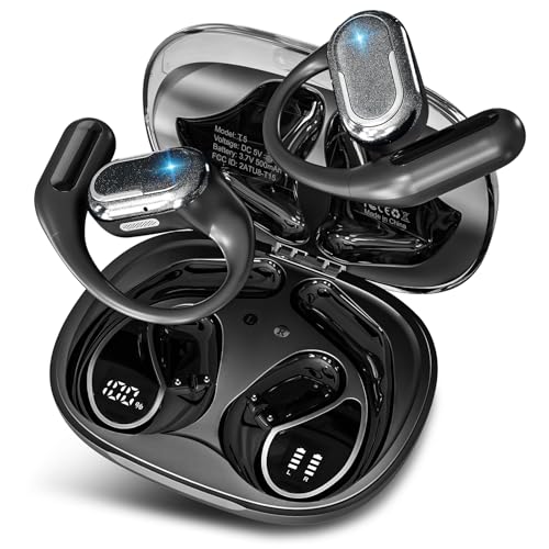 CXK Open Ear Headphones, Bluetooth 5.4 Ture Wireless Earbuds with 60Hrs Playtime & Digital Display, 0.27oz Lightweight Design Air Conduction Headphones with Mic, IPX6 Fit Cycling, Running, Black