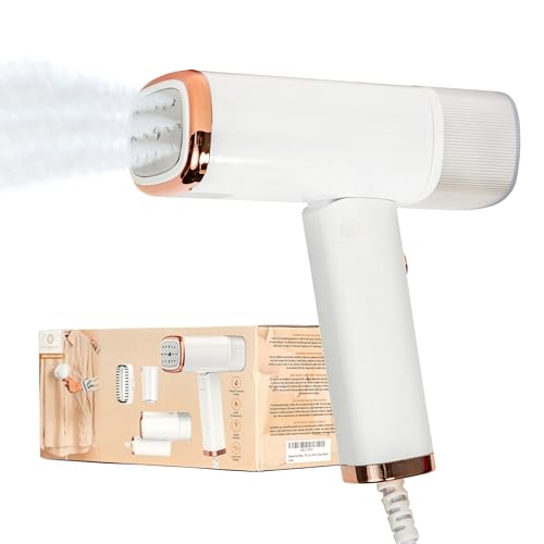 Travel Essentials : Steamer for Clothes – Home or Travel Steamer & Iron, White with Rose Gold Accents, 1000W Steam, Fast Heat Up, Removes Wrinkles in Seconds, a must-add to Travel Accessories