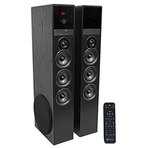 Rockville TM80B Powered Home Theater Tower Speaker System, Black, 800W, 8″ Subwoofers, Bluetooth, USB/SD Playback, FM Radio, Remote Control, Karaoke Ready, Perfect for Home Entertainment