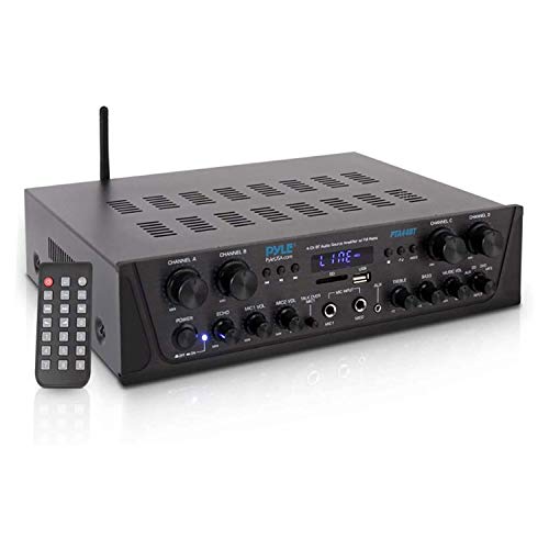 Pyle 500W Karaoke Wireless Bluetooth Amplifier – 4 Channel Stereo Audio Home Theater Speaker Sound Power Receiver with AUX IN, FM, RCA Subwoofer Speakers OUT, USB, Microphone IN with Echo