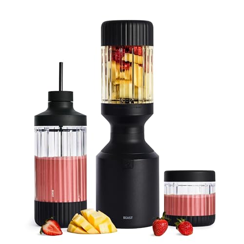 Beast Mega 1200 Plus | Premium Countertop Blender | Smoothies, Shakes, Sauces, Dips, Soups | Blends Ice and Frozen Fruit | XL Vessel | With Extra Vessels, Straw System | 1200W | (Carbon Black, 120V)