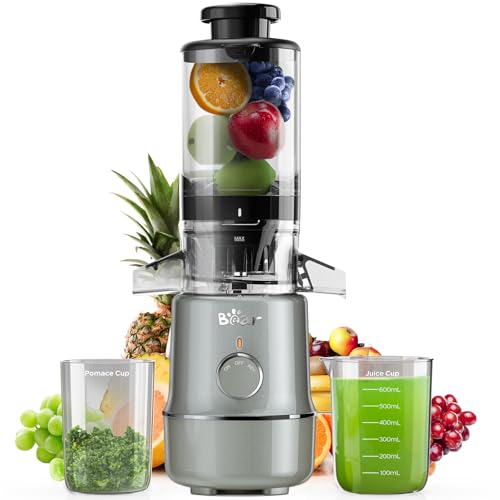 Bear Masticating Juicer Machine | Slow Cold Press Juicer with 4.1in Large Feeding Chute for Whole Fruits, Vegetables | Reversible Auger Easy to Clean