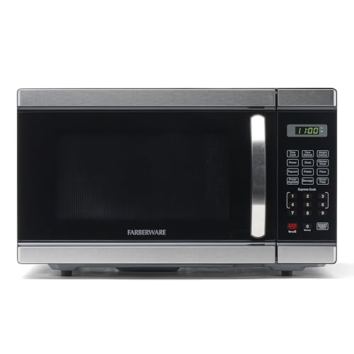 Farberware Countertop Microwave 1000 Watts, 1.1 Cu. Ft. – Microwave Oven With LED Lighting and Child Lock – Perfect for Apartments and Dorms – Easy Clean Stainless Steel