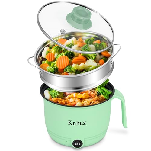 Hot Pot Electric With Steamer,Rapid Ramen Cooker,1.8L Mini Portable Self Heating Electric Pot For Cooking Noodles Oatmeal Pasta,Shabu Shabu Hotpot Pot Electric Dorm Lazy Pot,Non-Stick Green
