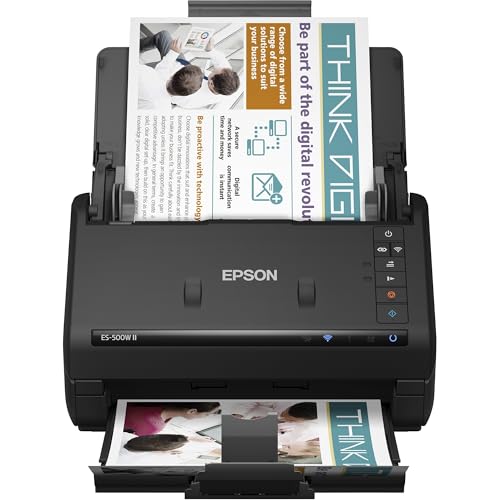 Epson Workforce ES-500W II Wireless Color Duplex Desktop Document Scanner for PC and Mac, with Auto Document Feeder (ADF) and Scan from Smartphone or Tablet