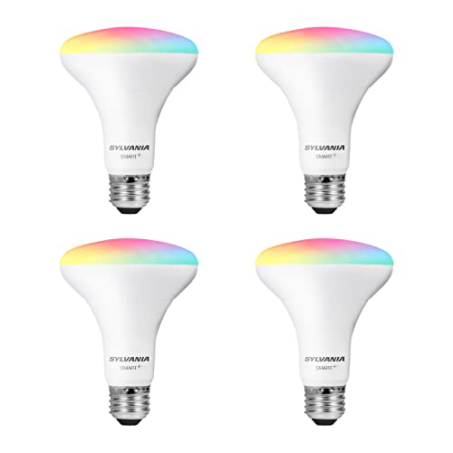 SYLVANIA Wifi LED Smart Light Bulb, 65W Equivalent Full Color and Tunable White BR30, Dimmable, Compatible with Alexa and Google Home Only – 4 Count (Pack of 1) (75688)