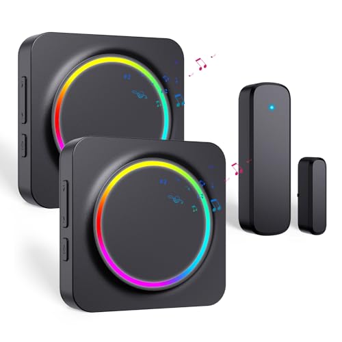 Door Chime, Door Chimes When Door Opens, Door Sensor Door Open Alarm with 600 FT Range, 32 Chimes 5 Adjustable Volume, Door Ringer Alert for Business/Home/Kids When Entering (2Receivers+1Sensor)