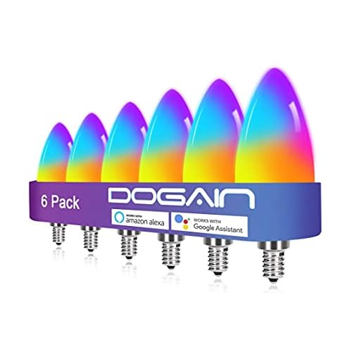DOGAIN Smart Light Bulbs E12 Base LED Light Bulb Color Changing WiFi-Bluetooth Lights Compatible with Alexa Google Home Tunable White Candelabra Bulbs 360 lm 35w Equivalent 6 Pack