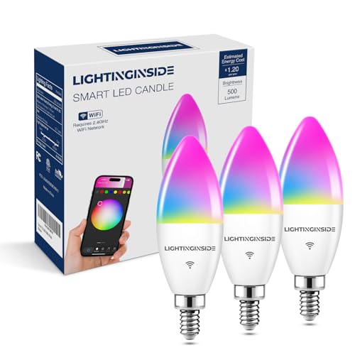 E12 Smart Bulb 60W Equivalent, 500LM 6W WiFi Candelabra LED Light Bulb Compatible with Alexa/Google Home, No Hub Required, RGBCW Chandelier Candle Bulb, 2.4G WiFi Only, ETL Listed, 3PCS