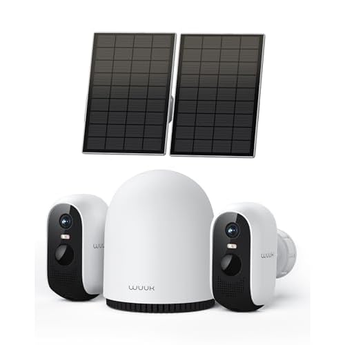 WUUK 2K Solar Security Cameras Wireless Outdoor, 2 Cam-Kit Home Security System, Color Night Vision, Forever Power, No Subscription, 32G Local Storage, Compatible for Alexa, Google Home, 2.4G&5G WiFi