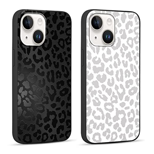 2 Pack Cute Cheetah Print for Apple iPhone 13/14 6.1″ Phone Case,Luxury Leopard Pattern Design Cases Soft Silicone Slim TPU Shockproof Protective Bumper Cover for Women Girls-Black & White
