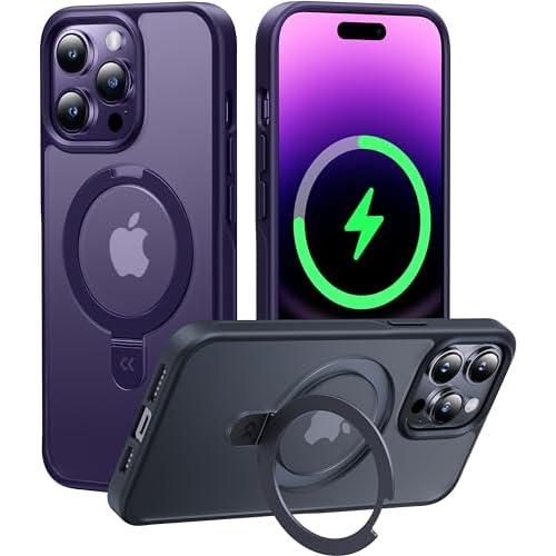 CASEKOO Designed for iPhone 14 Pro Max Case with Magnetic Invisible Stand [Military Drop Protection] [Compatible with MagSafe] Shockproof Slim Translucent Matte Promax Case 6.7 Inch, Purple
