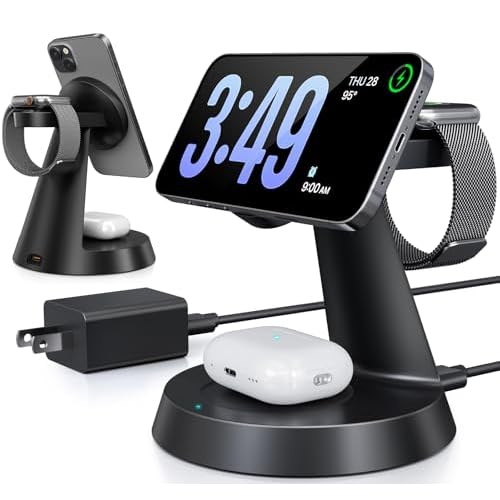 3 in 1 Charging Station Compatible with Magsafe Charger Wireless Charger Stand for iPhone 16 15 14 13 12 Series Wireless Charging Station for AirPods Wireless Charging Stand for iWatch Series