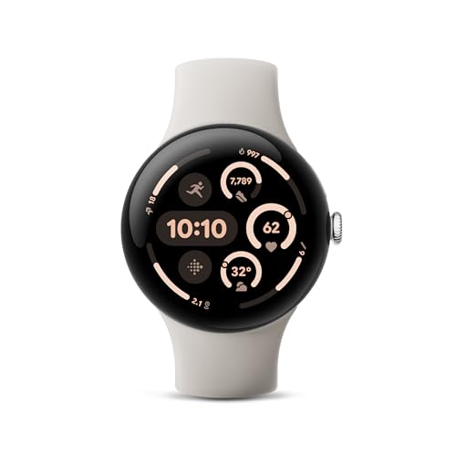 Google Pixel Watch 3 (45mm) Latest Model – Android Smartwatch, Heart Rate Tracking, Fitbit Advanced Running, Fitness Insights, 24-Hour Battery – Polished Silver Aluminum Case – Porcelain Band – Wi-Fi