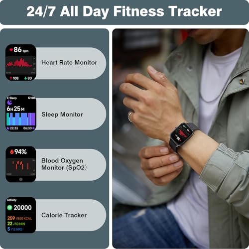 💯【24/7 Accurate Health Monitoring】This smart watches for men will track your heart rate, blood oxygen (SpO2), Stress and sleep quality in real-time (deep sleep, light sleep, waking up). Stay on top of your fitness and wellness goals with advanced health insights. It will also record your steps, calories consumed, etc. This watches for men is your best companion for fitness, sport.