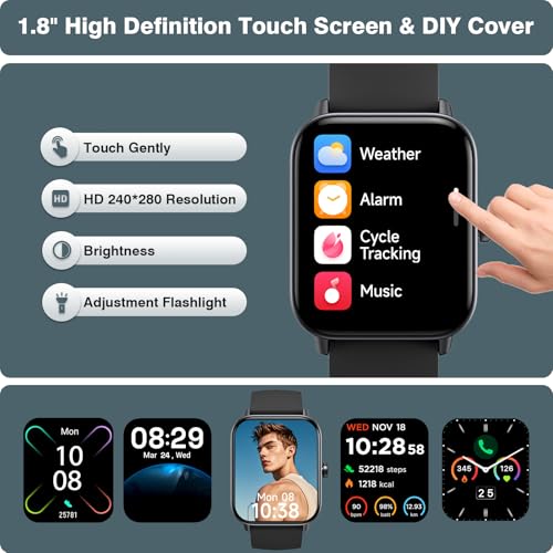 💯【HD Touch Screen & Customizable Watch Faces】This watches for women features a 1.8-inch HD touchscreen with 240*286 resolution, delivering crisp and vibrant visuals. Using the “VeryFit” app, choose from 120+ stylish watch faces or upload your favorite photos to personalize your smart watches and express your unique style.