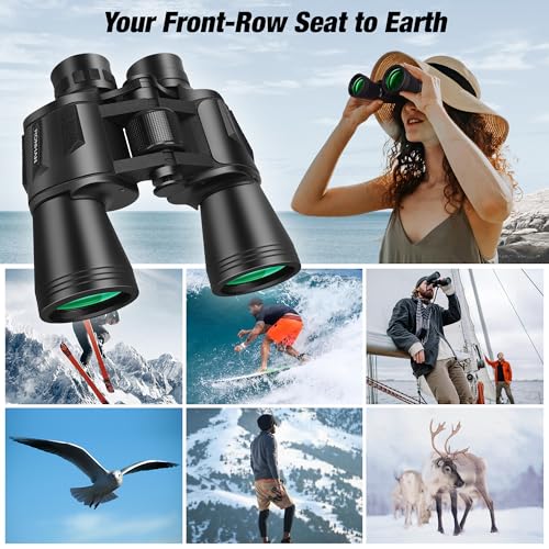Binoculars for Adults High Powered, Military Compact HD Professional/Daily Waterproof 20×50 Binoculars for Bird Watching Travel Hunting Football Games Stargazing with Carrying Case & Strap