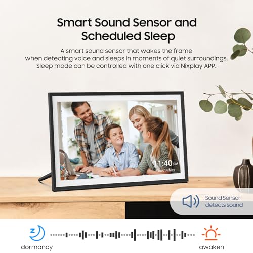 Personalized Design & Smart Sound Sensing – Whether wall-mounted, on a desktop, in portrait, or landscape, you can easily place the frame in your preferred position, and the content will auto-rotate accordingly. Nixplay-SenseMe is a smart sensor that wakes up your frame when you are in the room and puts it to sleep when you are not. Works with Amazon Alexa – just ask your ApoloSign WiFi digital photo frame for the playlist you want.