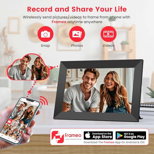 FRAMEO DIGITAL PICTURE FRAME: Share life’s beautiful moments instantly with family, friends, or your loved one no matter when or where you are with our Frameo digital photo frame. After connecting digital frame to Wifi network, you can send pictures or videos to digital frame from your mobile phone via “Frameo” App. Frameo App can be easily downloaded on iOS & Android Google Play store, gives you full control over your digital photo frame. Even live apart but hearts can be connected closely with Frameo frame