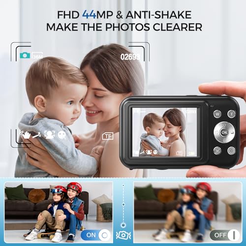 【FHD 44MP & Anti-Shake make the photos clearer.】- The digital camera uses an upgraded CMOS photosensitive system to take FHD 44MP photos. It is also equipped with Anti-Shake function, which can take natural and clear photos with a simple setup, and the white balance can be adjusted to capture natural photos in a variety of environments.