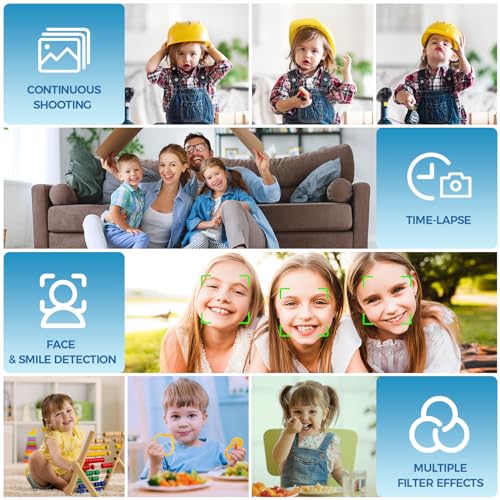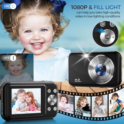 【1080P & FILL LIGHT can help you record happy time.】- The digital camera supports 1080P HD recording, features a 2.4-inch IPS HD display, and includes a fill light to assist you in record happy time with friends, family at life and trips even in low light conditions. It is equipped with a built-in microphone, which can be used as a webcam to share wonderful life, so that beginners and children can use the camera to capture beautiful moments.