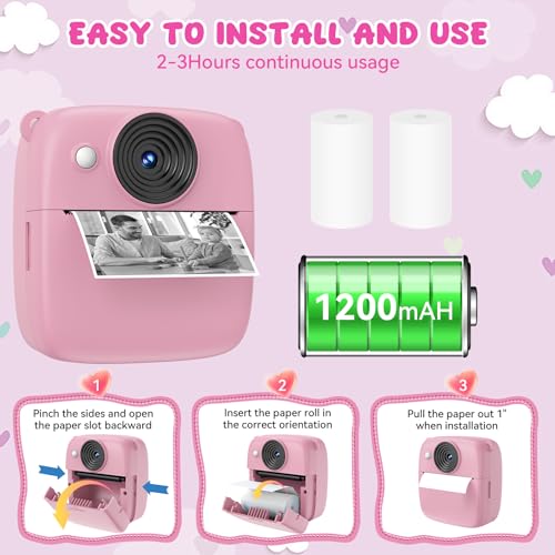 【Multifunctional Kids Camera Instant Print】The kids print camera is equipped with autofocus, 8.0 megapixels and 1080P video.Greatly improved the clarity of photos.In addition, it also has instant printing, time-lapse, continuous shooting, games, mp3.Easy to operate, children can easily grasp.This can meet the different needs of children and stimulate their interest in photography.