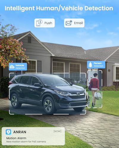[AI-Powered Detection] This intelligent PoE surveillance system employs advanced recognition algorithms to accurately distinguish between humans and vehicles through silhouette analysis, effectively minimizing false alarms triggered by non-threatening sources like wildlife or environmental interference. Users can receive real-time alert notifications directly on their smartphone lock screens, enabling instant situational awareness.