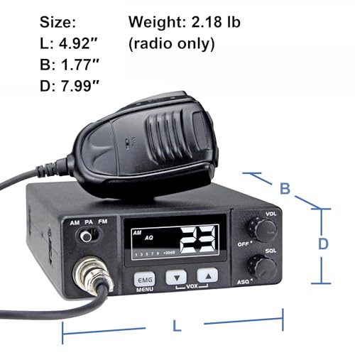 505PRO Mini CB Radio: Dimensions: 4.92*1.77*7.99,Weight: 2.18lb. Mini size fits where you want it to be mounted.