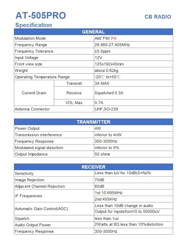 Be the first to review “CB Two Way Radio AT-505PRO for Truckers Long Range,VOX Mini CB Radio w/PA System for Truck, PA AM FM switchable Two Way Radio”