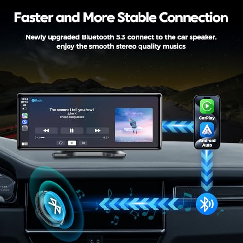 10.26″ Wireless Apple Carplay Screen for Car, Secure Strong Bracket, Portable Apple CarPlay& Android Auto Car Stereo with GPS Navigation, Bluetooth, Mirror Link, Voice Control,Fits All Vehicles