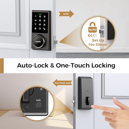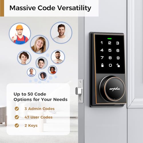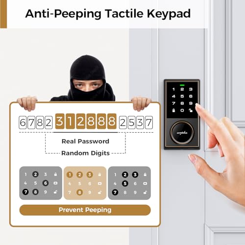 Keyless Entry Door Lock with 50 Code, 16 Anti-Peeping Password Touchscreen Door Lock Code, Electronic Keypad Deadbolt for Front Door, One Touch Lock, Low Battery Alarm, Easy to Install, Bronze