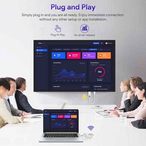 【Transmit and Receive】The wireless HDMI transmitter and receiver kit supports wireless stream video from a small screen (Desktop/PC) to a large screen device (TV/Monitor/Projector) with zero latency, audio and video synchronization. This is made possible due to the built-in antenna design. Setting it up is as simple as plugging in the HDMI and USB cables into the source and destination devices.