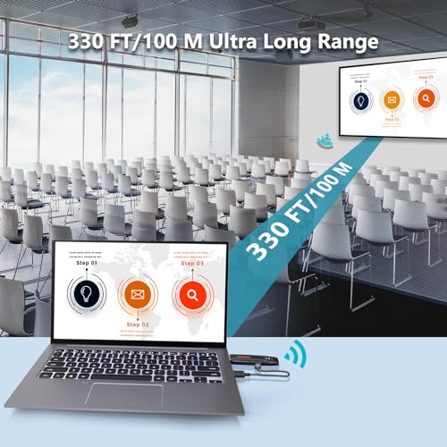 【1080P HD Ultra-Low Delay】The HDMI wireless transmitter and receiver delivers crisp 1080P@60Hz HD video, ensuring smooth playback for slideshows, movies, or live demos,with ultra-low delay (