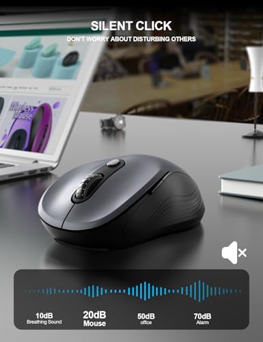 Trueque Wireless Mouse for Laptop, 2.4GHz Ergonomic Computer Mouse with Back & Forward Buttons, 3 Levels Tracking Speed, 6 Buttons, Optical USB Cordless Mice for Windows Chromebook MacBook PC (Gray)
