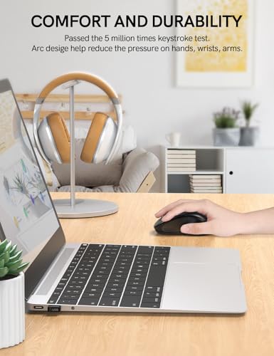 Ergonomic Design, All-day Comfort. This wireless mouse features a streamlined, curved design that follows the natural curves of your hand. Skin-friendly silicone and plastic on the sides provide a comfortable grip. Significantly reduces stress on thumbs and wrists when in use.