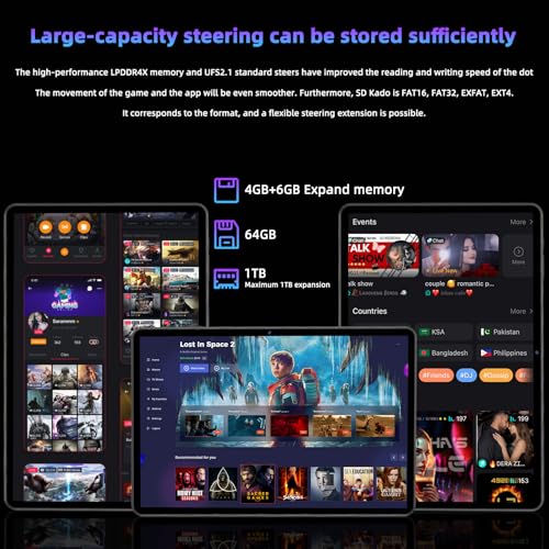 Generous Storage to Keep Your Memories & Media – With 10GB RAM (4GB+6GB expansion) and 64GB ROM, this tablet for adults ensures smooth performance for work, entertainment, and browsing. Need more space? Expand up to 1TB via microSD card, so you can store family photos, favorite movies, music, and important documents without worrying about running out of space