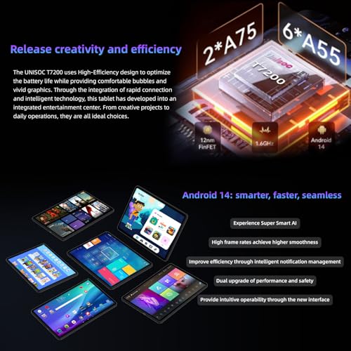 Smooth & Powerful Performance for Seamless Use – This 10 inch tablet is powered by a 1.6GHz Unisoc T7200 octa-core processor and Android 14, delivering a fast, smooth experience. Whether you’re catching up on emails in the morning, enjoying a casual gaming session, or video chatting with family, this Android tablet ensures seamless multitasking with no lag